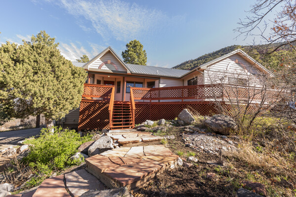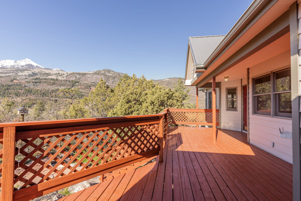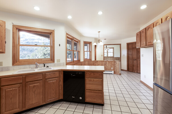Welcome to Ouray County and an ideal property to make your home in SW Colorado. Located just off Hwy. 550 in the Ponderosa Village subdivision and roughly midway between (and short distances from) the mountain communities of Ridgway and Ouray, this home enjoys end-of-road privacy with a circular driveway and stunning mountain views. The spacious main floor includes separate dining and living room areas, as well as a large family room that opens onto the south-facing deck. And the pellet stove in the family room makes for a warm and cozy setting during chilly weather. The kitchen features a nice breakfast nook area, and the laundry room - just off the kitchen at the top of the stairs to the garage - has additional cabinets for laundry goods and convenient storage. The primary bedroom, bath and walk-in closet are on one side of the living room and the hall bath, and two other bedrooms are on the opposite side. One bedroom includes a built-in desk, and the other bedroom includes a walk-in closet. All bedrooms have overhead fans and there is gas-fired, hot-water baseboard heat throughout. With room for all your outdoor gear and other storage needs, the 1000+ ft2, oversized 2-car garage includes heated workshop space with cabinets and countertops, and a heated half-bath. Another helpful feature is non-potable, irrigation water provided through the subdivision via a frost-proof spigot on the property. And you’ll enjoy your time outside by relaxing on the deck and/or the adjoining patio and backyard. Don’t miss this outstanding Ouray County home - Plan your visit soon! (Some photos of this listing may include virtually staged amenities, furniture or fixtures.)